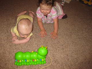 She has recently discovered that she has toes and loves to grab them when she is lying on her back and make raspberry sounds.
